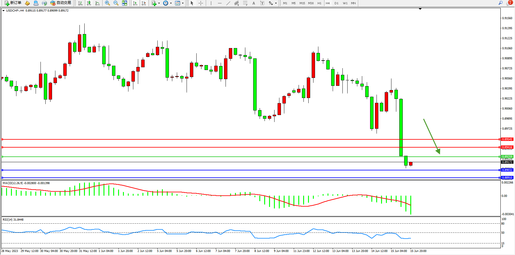 交易策略:0.89259下方看跌,目标0.89032 0.88910