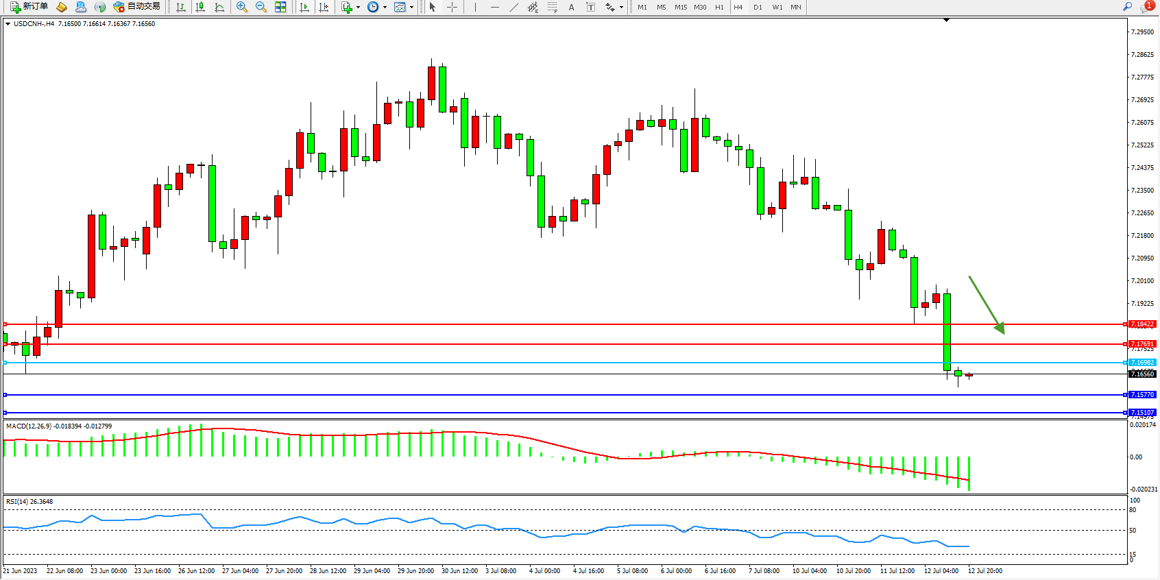 交易策略:7.18962下方看跌,目标7.15770  7.15107