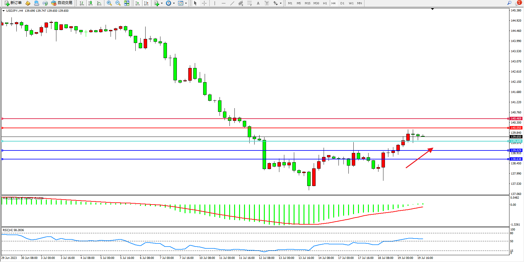 交易策略:139.449上方看涨,目标140.050  140.469