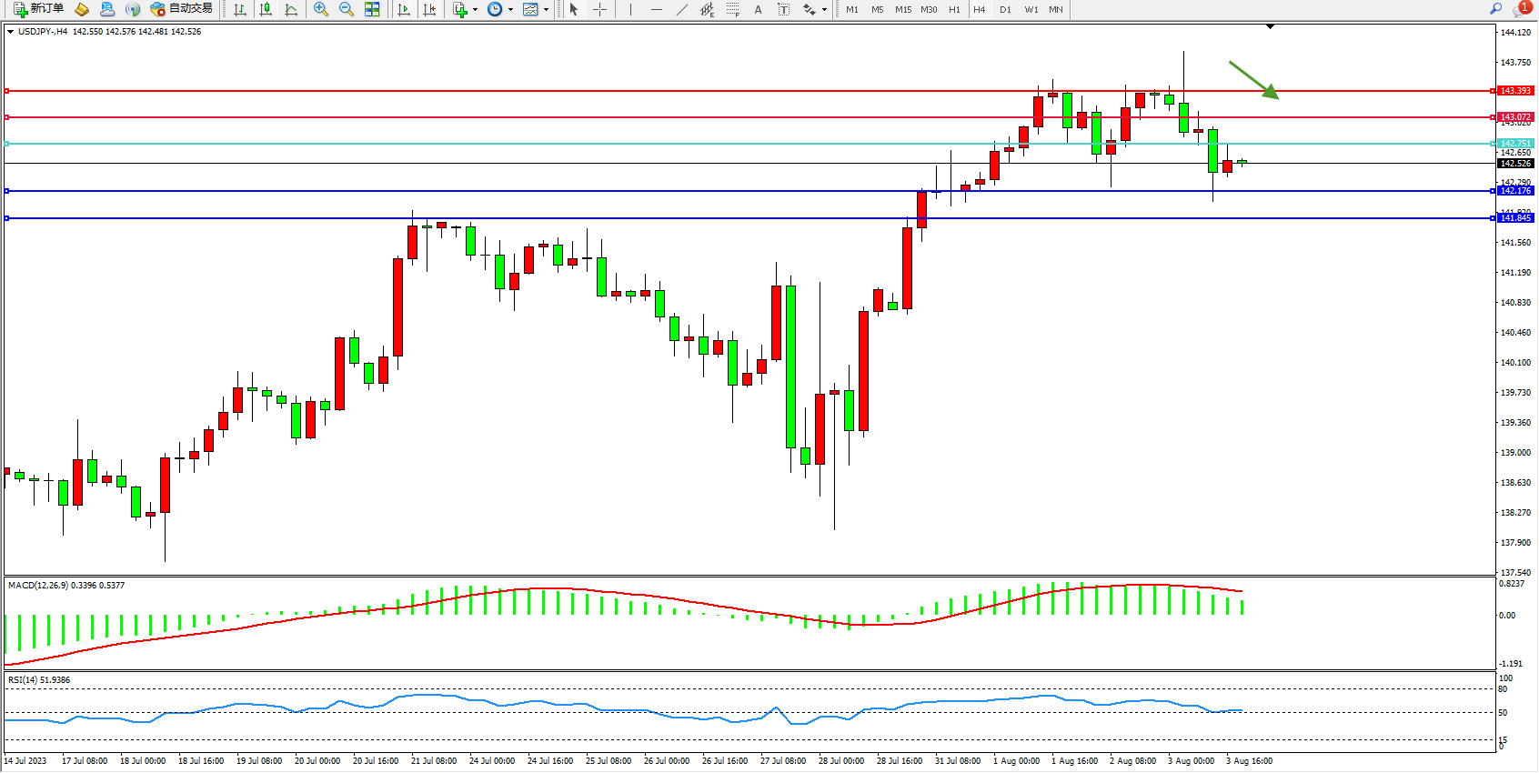 阻力位:143.072 143.393
