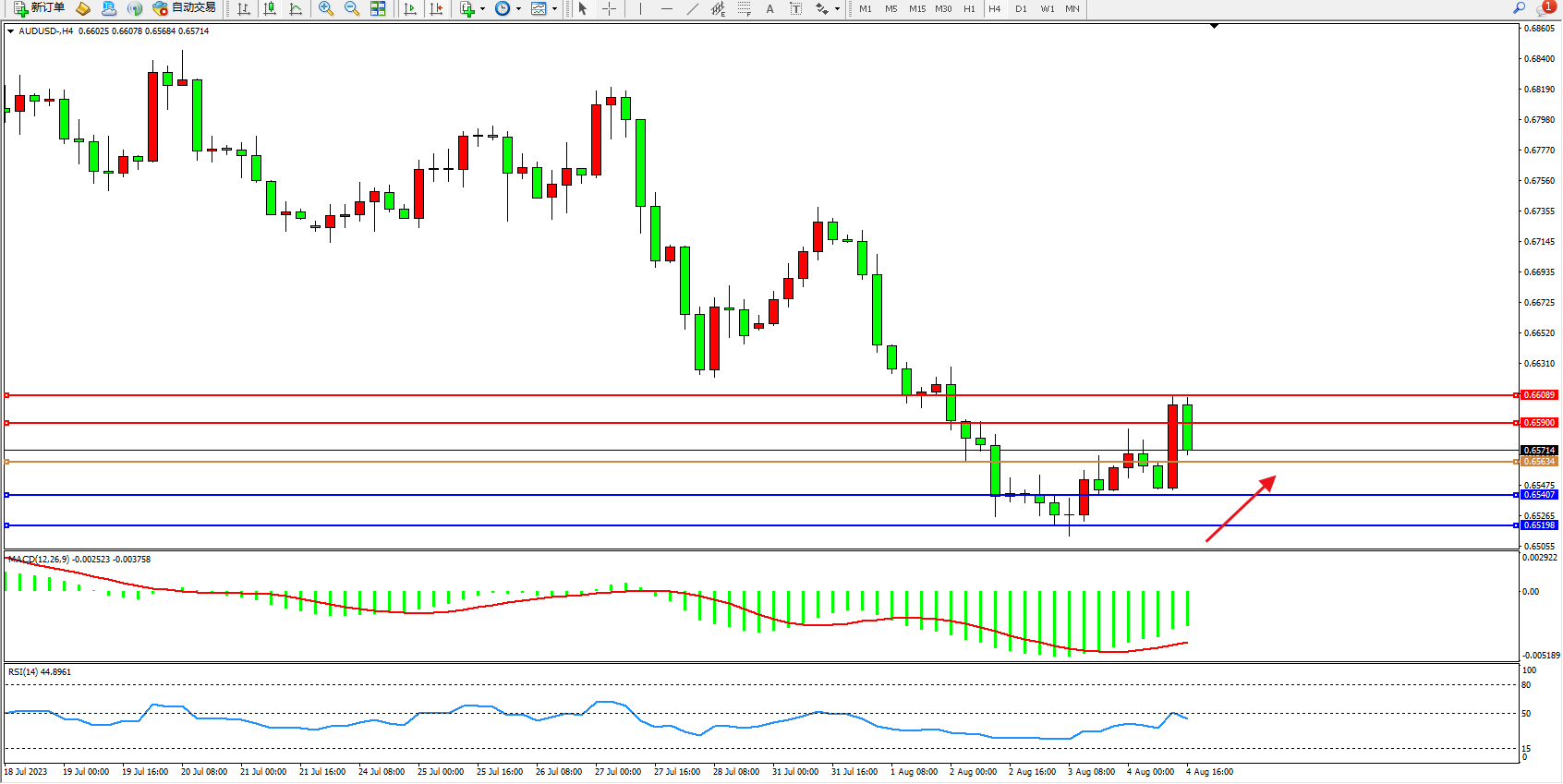 交易策略:0.65634上方看涨,目标0.65900 0.66089