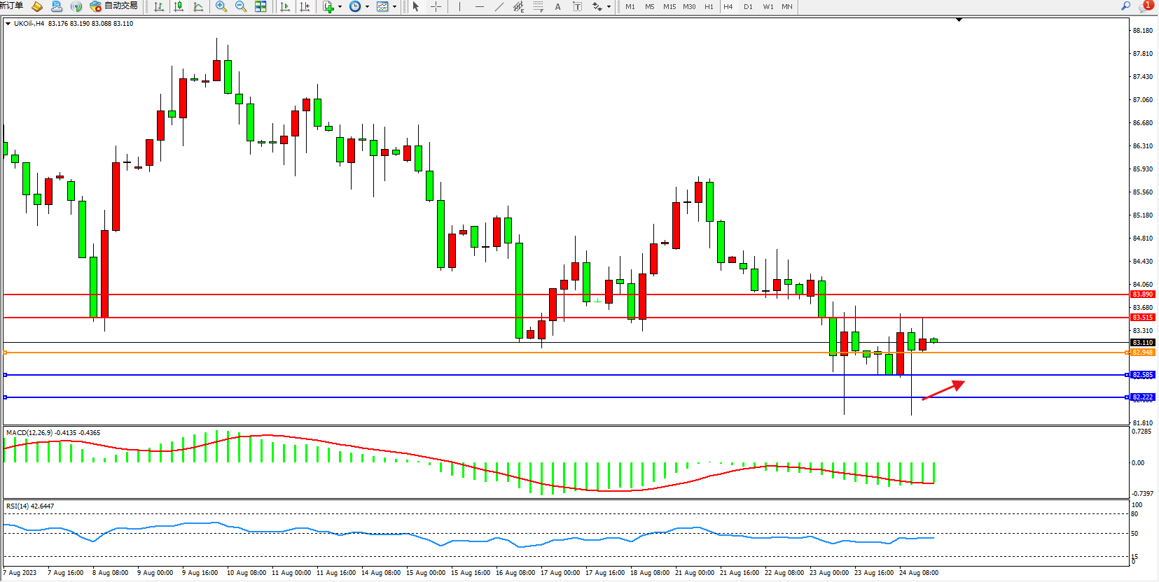 交易策略:82.948上方看涨,目标83.515  83.890