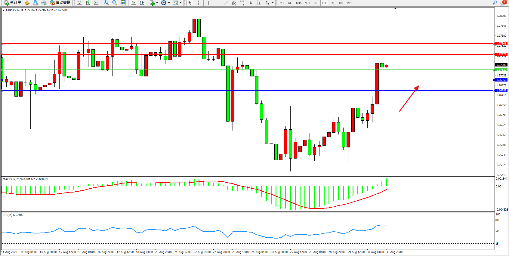 交易策略:1.27122上方看涨,目标1.27372  1.27548