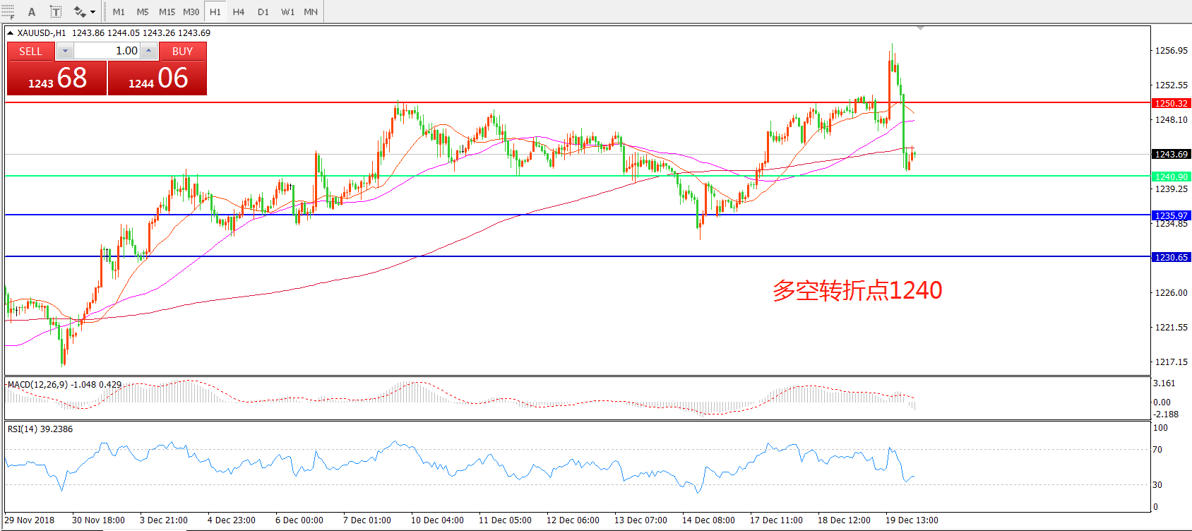 多空转折点:1240.00