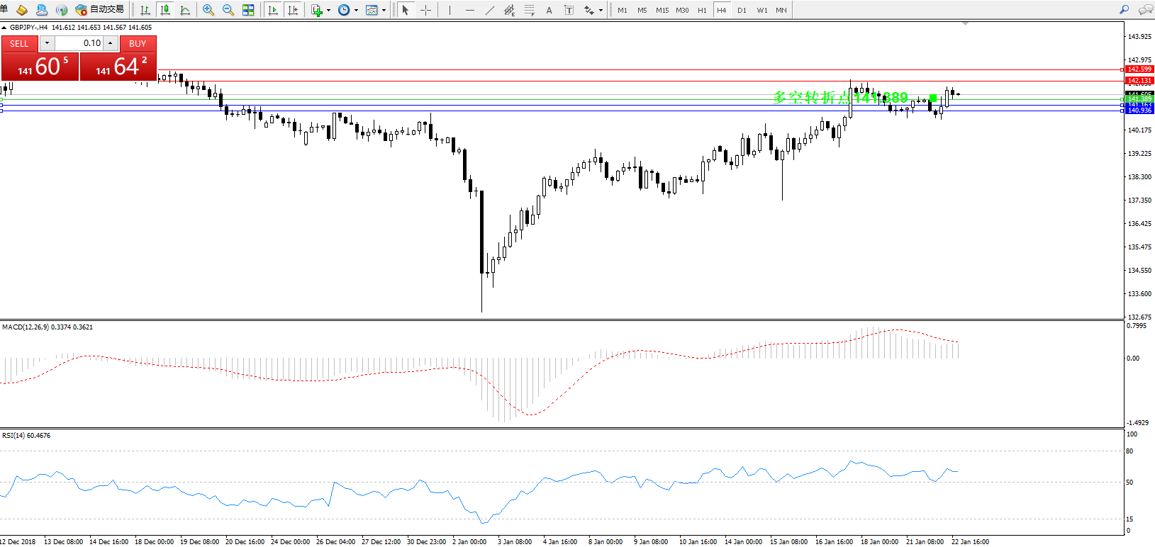 交易策略:141.389上方看涨,目标142.131142.599