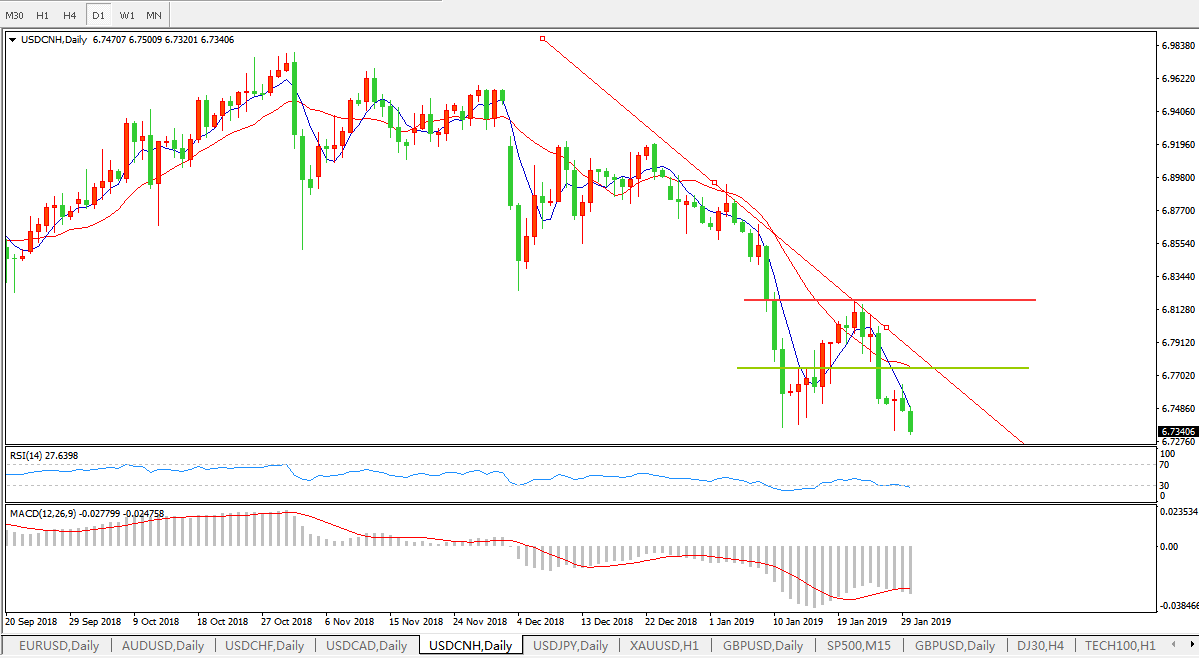 美元兑人民币USDCNH 日线图:
