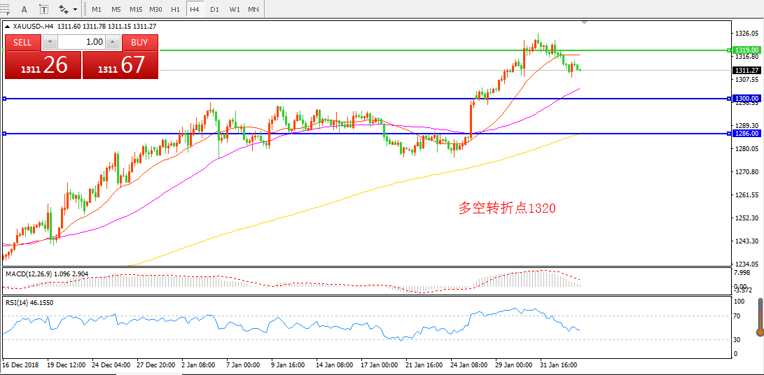 交易策略:在1320.00之下看跌,目标1300.00  1280.00