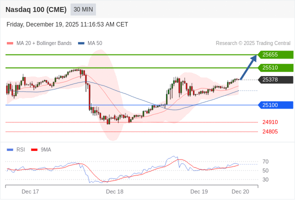 在 25100 之上,看涨,目标价位为 25510 ,然后为 25655 。