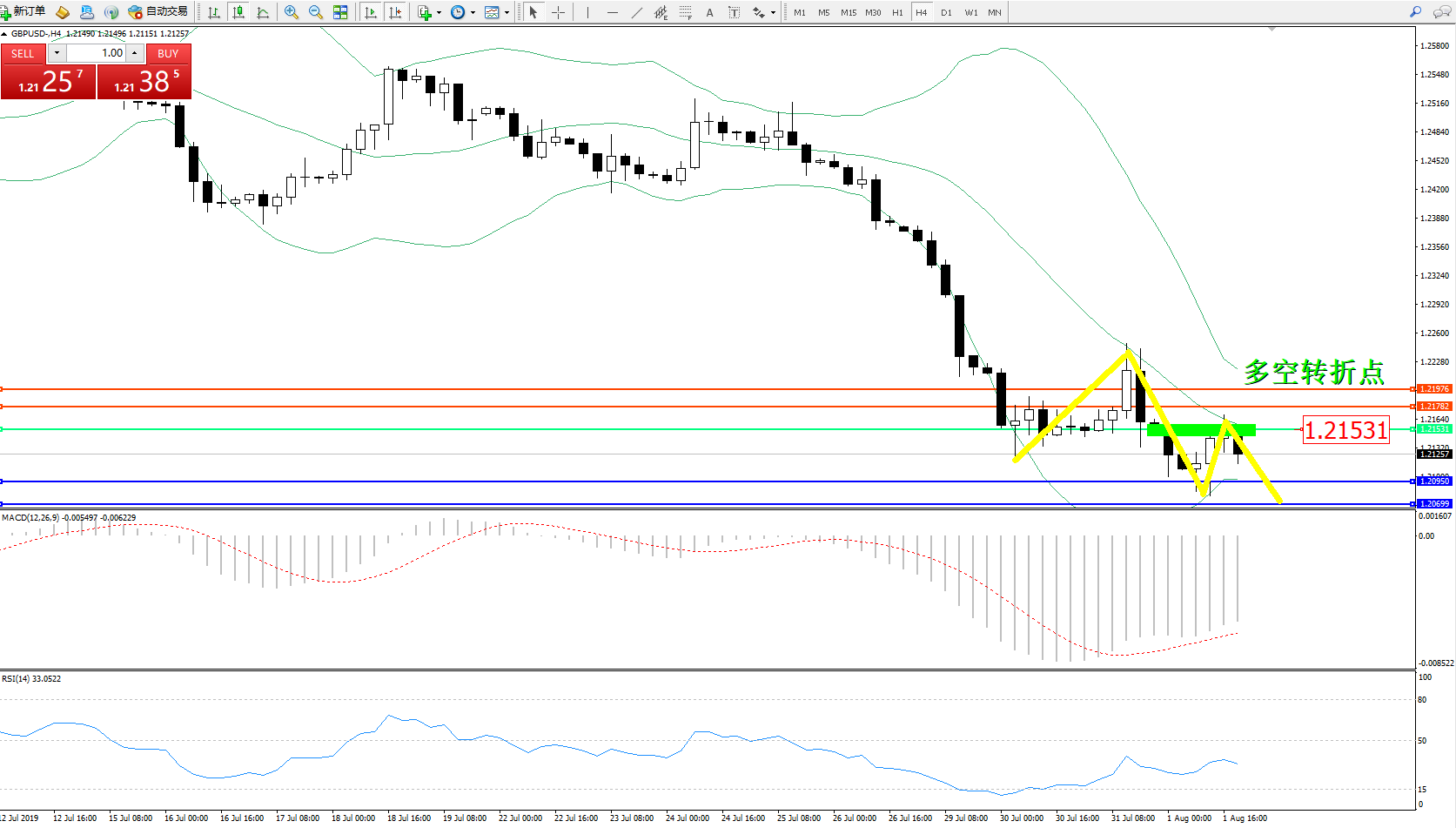 交易策略:1.21531下方看跌,目标1.20950、1.20699