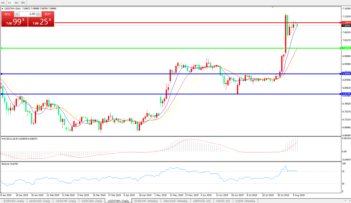 交易策略: 在7.0000之上,看涨,目标价位为6.7100,然后为7.2000。