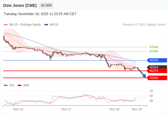 在 46930 之下,看跌,目标价位为 46375 ,然后为 46000 。