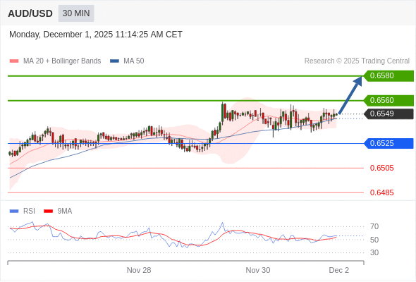 在 0.6525 之上,看涨,目标价位为 0.6560 ,然后为 0.6580 。