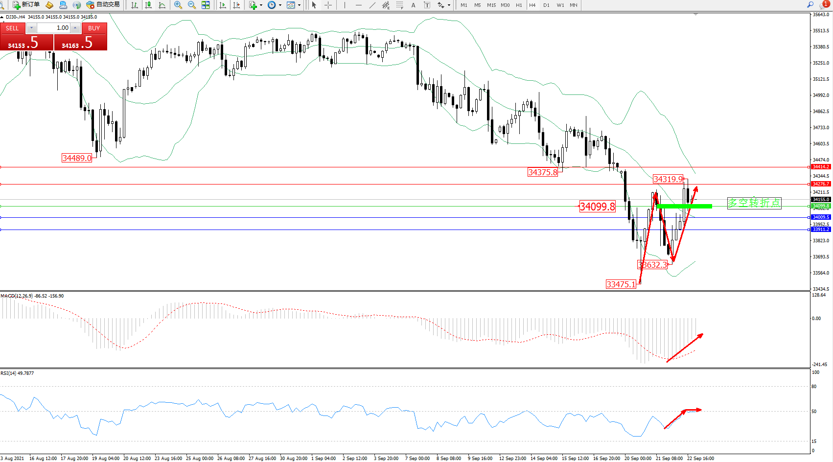 道琼斯指数9月22日(周三)收盘上涨338.48点,涨幅1.00%,报34258.32点;美联储将基准利率维持在0%-0.25%不变,符合市场预期,美股三大股指集体收涨,美联储官员暗示可能很快就会开始缩减债券购买计划,并透露越来越倾向于在2022年开始加息;联邦公开市场委员会周三在声明中表示,如果就业和通胀如广泛预期所料继续朝着美联储目标取得进展,则放缓资产购买步伐的条件可能很快达到。