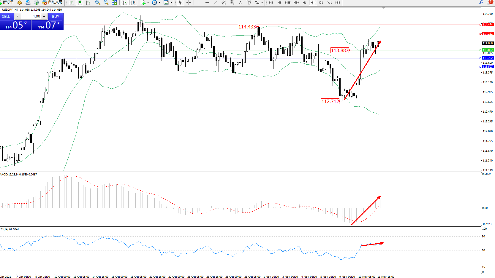 交易策略:113.887上方看涨,目标114.262、114.474