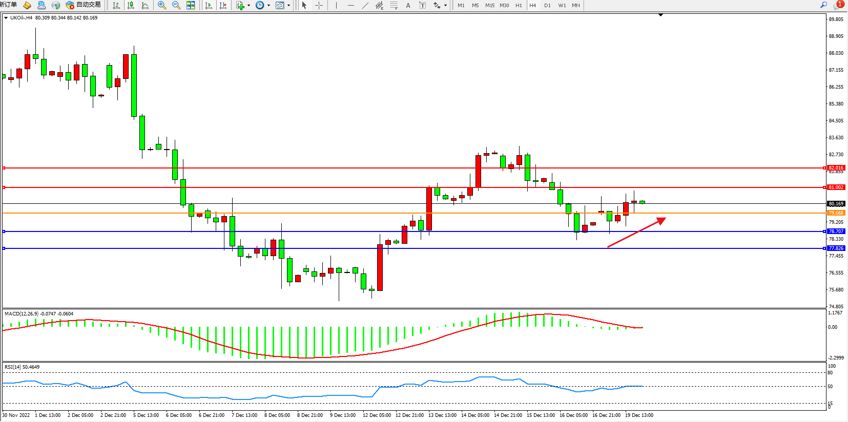 4小时图看:多头动力窄幅整理上行,市场看涨情绪持续,短期多头有继续向上缓慢拉升迹象,MACD指标处于0轴线附近弱势徘徊,RSI指标处于50均衡线附近弱势整理;