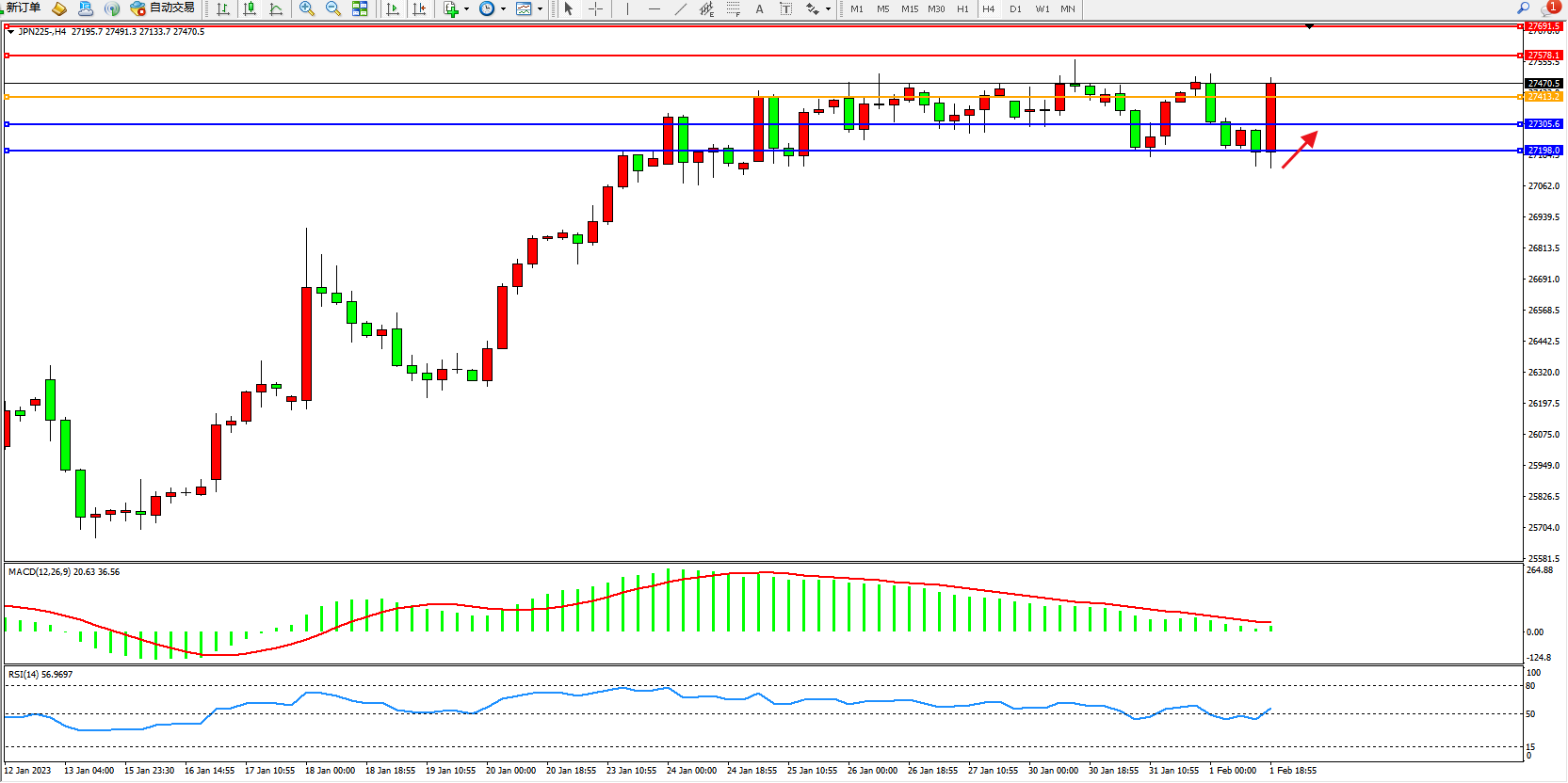 日经225指数2月1日(周三)收盘上涨29.39点,涨幅0.11%,报27356.50点。日本央行1月份购买了创数据纪录的23.69万亿日元(约合1820亿美元)的国债,突显出该行捍卫收益率上限的决心,以让其不受押注央行会在短期内加息的投资者的攻击。