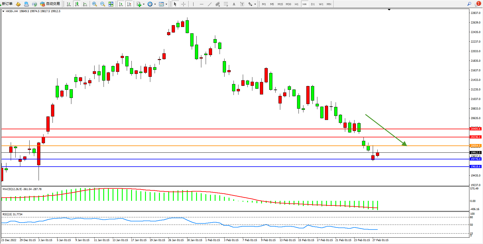 恒指HK50 4小时图