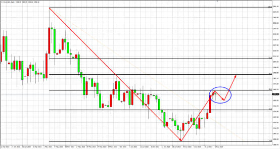 周四(7月13日)数据显示通胀降温但劳动力市场依旧紧张,市场预期美联储可能很快结束加息周期,现货黄金徘徊在1个月高点附近,最终收涨0.17%。