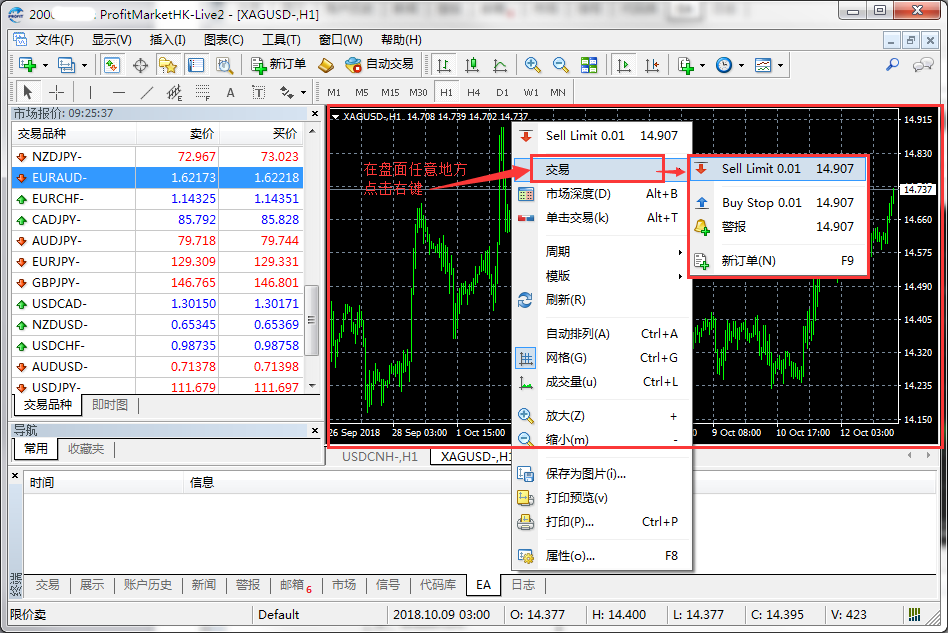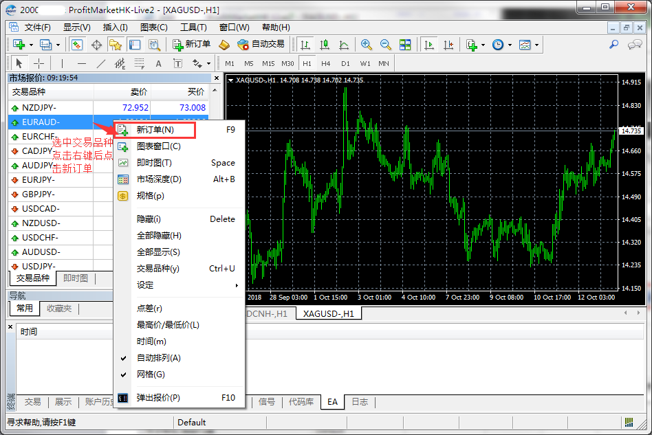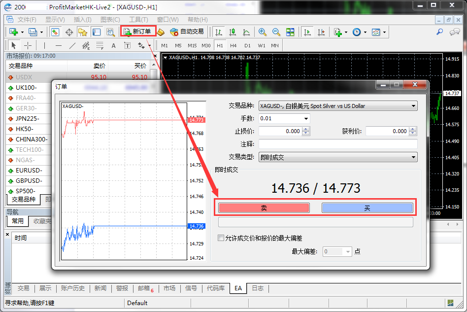 2.【市场报价】→交易品种→【新订单