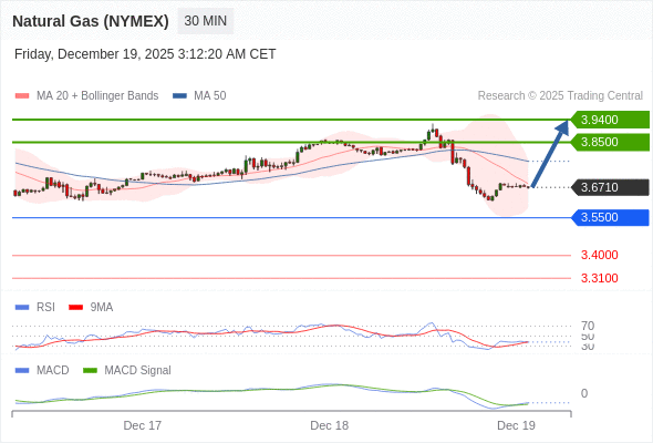 Natural Gas (NYMEX) (FEB6) 当日内: 有上涨的可能,目标价位定在 3.9400 。